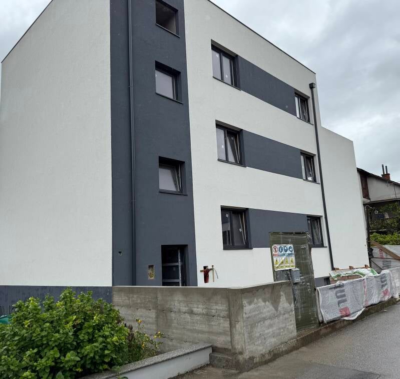 Stanovi u urbanoj zgradi, faza kompletne VISOKE ROH BAU izgrađenosti sa vanjskom infrastrukturom te zatvorenom PVC stolarijom i fasadom.